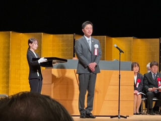 「この度は表彰をいただきましたことを心より光栄に思っております。本校の全ての教職員、保護者、そして何よりも児童の皆さんの日々の努力と協力の賜物であります。皆さんの熱意と努力に感謝いたします。