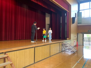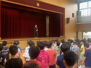 校長先生のお話の後、1・4年生児童代表による作文発表、夏休み中の水泳記録会に参加した児童への記録証授与がありました。