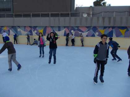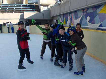 12月5日(土)味原地区青少年指導員の方々の引率のもと、天王寺スポーツセンターのアイススケートに行きました。毎年恒例の行事で、今年は4〜6年生の希望者約40人が参加しました。