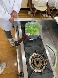 5年調理実習「ゆで野菜」