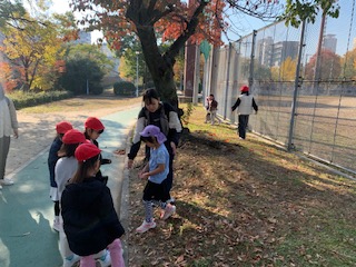 落ち葉を使って、思い思いに葉っぱ遊びをしました。