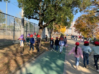 本日、真田山公園に、2年生と味原幼稚園の5歳児クラスが集まりました。