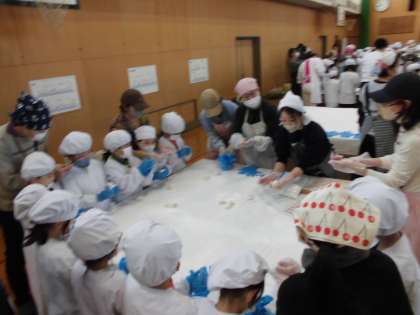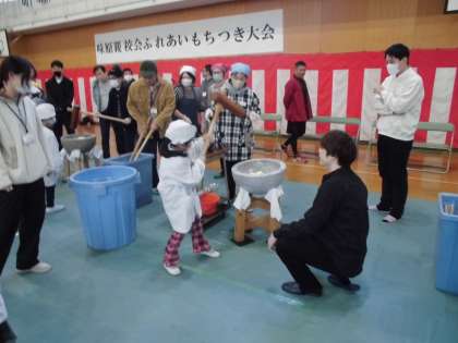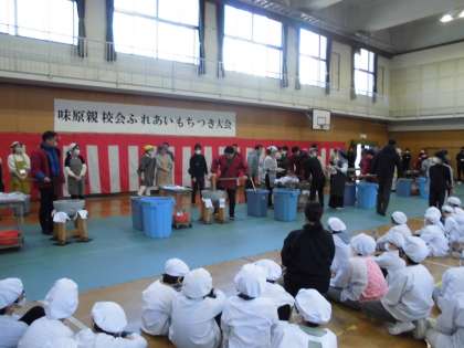 学年ごとに分かれて、参加者全員が餅をつきました。
