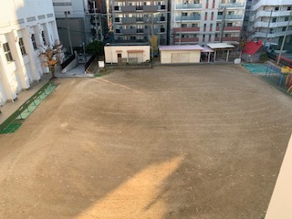 始業式からは、きれいな冬芝の上で遊ぶことができます。