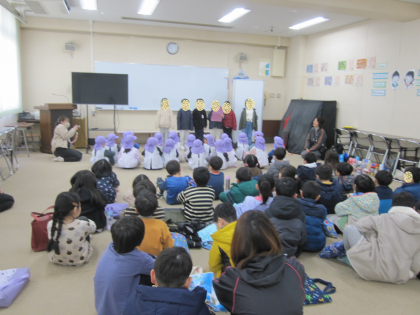国語「小学校のことをしょうかいしょう」の学習で書いた作文を年長さんに聞いてもらいました。