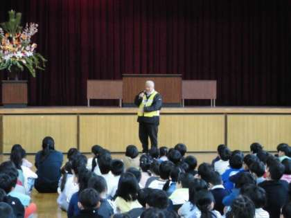 今年度初めての児童朝会では、天王寺警察と天王寺区役所の方から、地域で安全に過ごすために気をつけることを教えていただきました。また、4月の生活目標は「学校のきまりを守ろう」です。登下校の時刻や学校での過ごし方など学校にはたくさんのきまりがあります。新しい学年が始まったこの時期にしっかりと確かめておきたいと思います。
