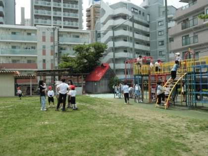 たてわり班編成がありました。新しい班で自己紹介をして、名札を作りました。明日の万博での遠足では、6年生と1年生が一緒にバスに乗ったり、お弁当を食べたりとペアで活動します。顔合わせの今日は、一緒に運動場で遊びました。優しく1年生に接する6年生の姿はとても頼もしいです。