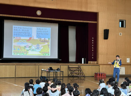 天王寺区役所や天王寺警察署の方から、交通ルールや「5つのやくそく」のお話を聞きました。学習したことを生かして、危険を避け、安全に過ごしてほしいと思います。
