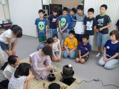 子ども達は、「思っていたより苦かったけど、おいしかった」「大人の味だな」「今は簡単にペットボトルなどでお茶がすぐに飲めるが、昔はお茶を飲むていねいな作法があったということを初めて知った」と感想を出し合いました。