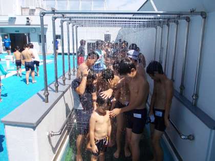 9月2日(金)3時間目、味原幼稚園5歳児をお迎えして幼小プールを実施しました。園児たちはプールに入るとき、怖そうにしていましたが、さすがは5・6年生。抱っこしたり手をつないだりと、ペアの子を優しくサポートして一緒にプールに入ることができました。みんなリレーや宝探しなど水遊びを楽しんでいました。終わりの時間になっても「もっと入りたい!」と園児の声が上がっていました。