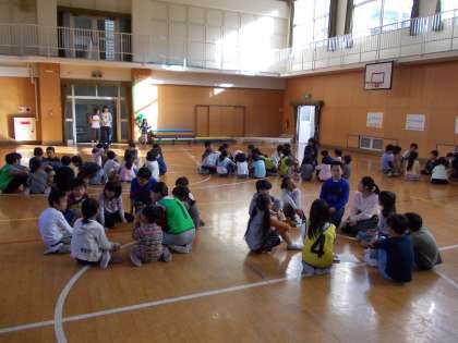 10月27日(木)の児童集会は、後期のたて割り班編成でした。はじめに、新しいメンバーで輪になって自己紹介をしました。新しい班のリーダーは5年生です。前期のリーダーだった6年生の後を受け継いで、みんなをまとめていってほしいです。