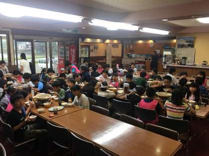 林間2日目の夕食は鴨鍋でした。とっても美味しく、あっという間に完食。お鍋のつゆまでなくなっているグループもありました。