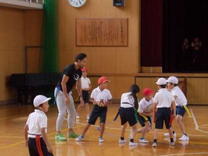 10月5日(木)ラグビー元日本代表の守屋篤さんをゲストティーチャーとしてお招きし、タグラグビー教室を実施しました。