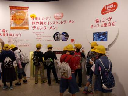 はじめに1階の展示フロアでインスタントラーメンの歴史や作り方について調べました。今から59年前に池田市で世界初のインスタントラーメンが発明されたことにみんな驚いていました。