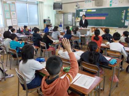 3年生「よくかんでたべよう」では、唾液によって消化がよくなるなど、かむことを意識することによって、たくさんよいことがあることを知りました。