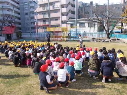 1月11日(木)地震を想定した避難訓練を実施しました。避難開始から全員が運動場に集合するまで約2分30秒かかりました。今回は、教室だけでなくみんなが学校のいろいろな所で過ごしている休み時間に実施しました。廊下や階段にいるときは近くの教室に入り机の下に避難すること、運動場や講堂にいるときは運動場の中央に集まること、理科室などの特別教室には入らないことを学習しました。