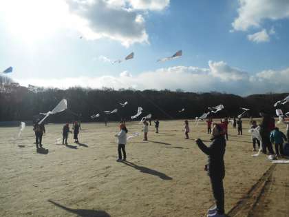 1月24日(水)1・2年生は大阪城公園にたこあげに行きました。