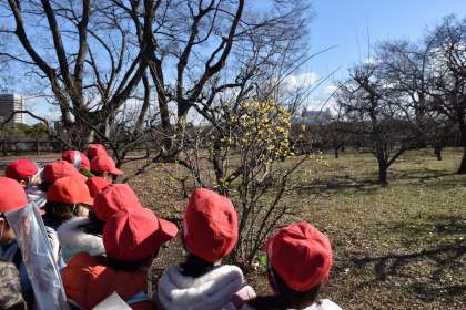 たこあげの後、梅林の様子を見に行き、少し咲いた梅も見ることができました。