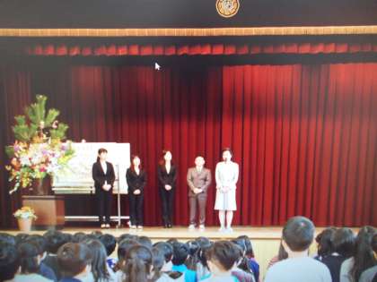 4月9日(月)今年度着任された職員の着任式がありました。子ども達は新しく来られた職員の方々のお話をしっかりと聞き「よろしくお願いします」と元気よくあいさつすることができました。また、校長先生から転校生の紹介もありました。