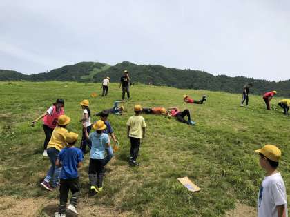 林間学習最後の活動、高原遊びをみんなで楽しみました。昆虫を探したり、高原を転がったり、木陰でゆっくり休んだりと思い思いに過ごしました。