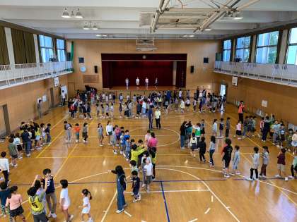 10月18日(木)の児童集会は、たてわり班で「ロンドン橋落ちた」を行いました。いくつかの班が一緒になり、大きな輪を作って進めていきました。子どもたちはピアノの音楽に合わせて歩いたり、止まったりして、楽しくゲームに取り組んでいました。