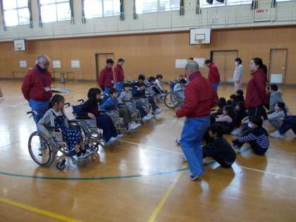 2月5日(火)ゲストティーチャーとしてリハビリテーションセンターの皆様にお越しいただき、4年生対象に車いす体験学習を実施していただきました。