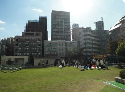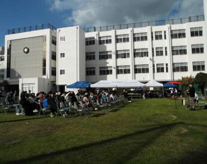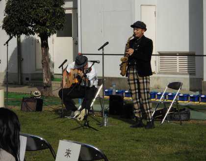11月15日(土)午後からは、芝生開放デーがありました。今年は、プロサックス奏者のYASUさんとPTA会長のギター演奏のコラボレーションや、譲渡会・フリーマーケットもありました。天気も良く、空の青さと芝生の緑がとても美しく、そこでいただくハーブティーやお抹茶もとてもおいしかったです。