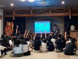 賢島に移動し、ホテル「みち潮」に着きました。 開舎式を行いました。 ペッパーの「...
