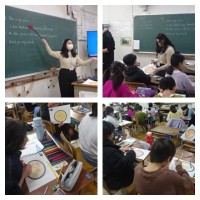 4年生の英語の学習では、自分でオリジナルピザを絵に描いて、友だちに英語で紹介す...