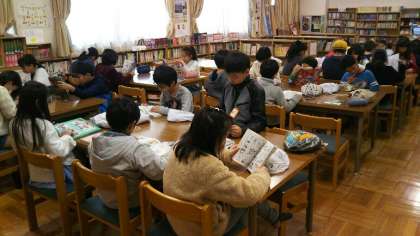 毎週金曜日には、学校図書館補助員の方が来てくださり、一日図書室を開放してくださいます。今日は、絵本の読み聞かせもしてくださいました。