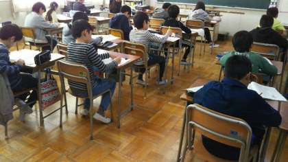 教室の様子をのぞくと、とても真剣な表情で解答用紙にむかっていました。