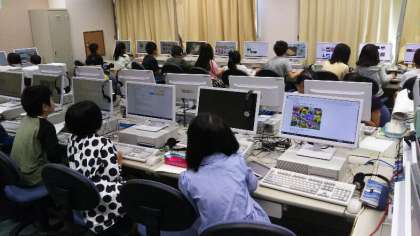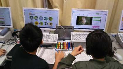 4年生が、春の草花や生き物を調べるために、パソコンルームで学習していました。