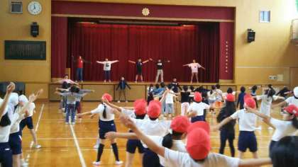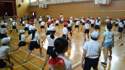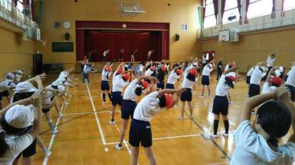 運動委員の子どもたちが、休み時間に他の学年の子どもたちに、ラジオ体操や桃陽体操を教えてくれます。