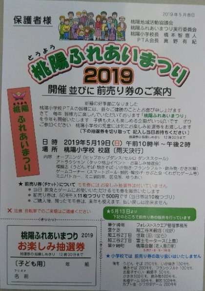 5月19日の日曜日に、毎年桃陽地域で恒例の「桃陽ふれあいまつり」が開催されます。