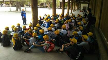 6年生が、春の遠足で、法隆寺と藤ノ木古墳を見学しました。