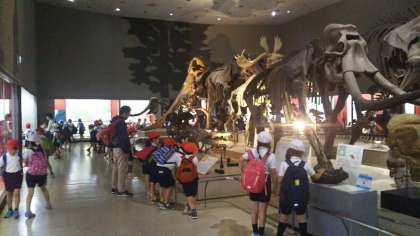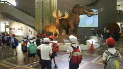 マンモスや恐竜の化石の展示を見て、子どもたちは少し興奮気味でした。