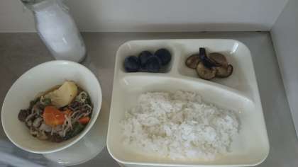 食材:牛肉、あかみそ、じゃがいも、上白糖、サラダ油、ニンジン、たまねぎ、なす、さんどまめ、いとこんにゃく、ぶどう