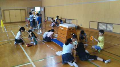 1メートルものさしや10メートルの巻き尺を使って、いろいろなものや場所の長さを測っていました。