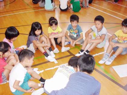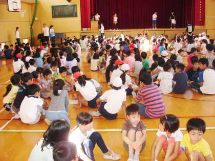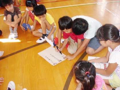 みんな、よく知っていて、かなりの正答率でした。高学年のおにいさん、おねえさんが低学年の子がもっているマジックに手を添えているほほえましい場面もありました。