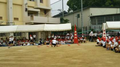 3年生最初の種目は、「その道の先にゴールあり!」でした。コース途中におかれた様々なポンイトをクリアしながら、走ります。