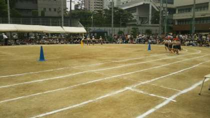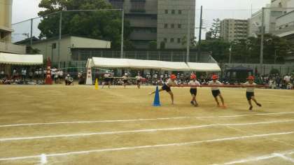 回転の中心になる児童のバーのコントロールとチームワークがポイントです。走るスピードも声をかけあいながらそろえなければなりません。力を合わせて頑張りました。
