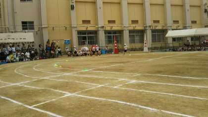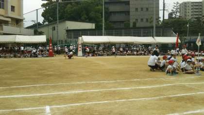 1年生がトラックで競争するのは、なかなか難しいのですが、入学して2か月間の成長のあとを見せてくれました。なかなか上手に走っていました。