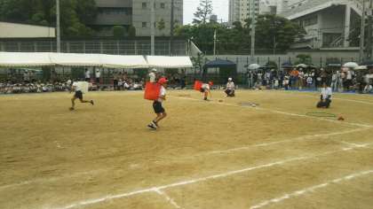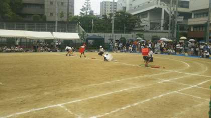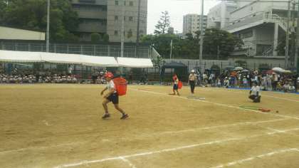 せっかく入れた玉が、次の玉を拾う時にこぼれてしまったり、一生懸命競技しているのに、笑いを誘うような場面もありました。・・・やっている子どもたちは、とても真剣な表情でした。