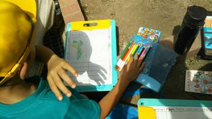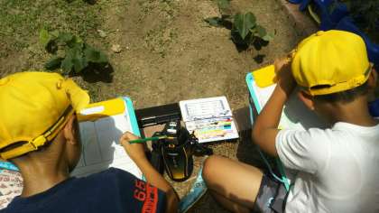 2年生が、生活の学習で、ミニトマトやサツマイモの成長について観察していました。