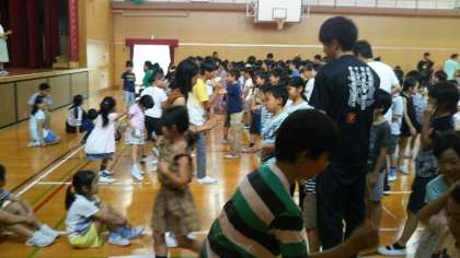 その後、初めてのなかよし集会なので、グループのメンバーが、リーダとハイタッチをしてからジャンケンをし、メンバー全員がリーダーに勝つ速さを比べるゲームをしました。