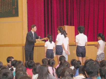劇のあと、校長先生から夏休み中、いろいろな大会での賞状をいただいた人達の紹介がありました。