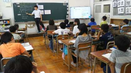 分数÷分数の計算の仕方について考えました。「面積図」「線分図」「かける数が整数になるよう計算式を工夫して」などいろいろな方法で、答えの導き方を考えました。
