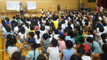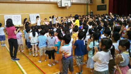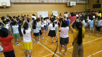 今日の児童集会は、音楽集会でみんなで「歌えバンバン」を歌いました。