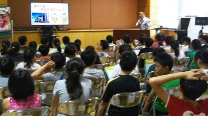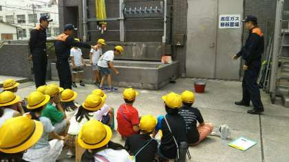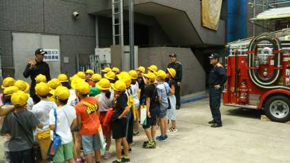 その後は、クラスごとに分かれて夏休みに向けて安全な花火遊びのしかたをお話しいただいたり、消防隊、救助隊の用具や仕事内容について説明していただきました。