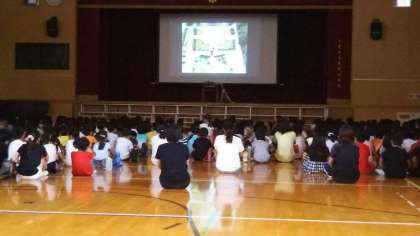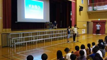 そして、今日の平和集会では、6年生が司会進行して、各学年の代表児童から絵本の感想を発表してもらったり、2歳で被爆し12歳で亡くなった佐々木さんのアニメを鑑賞したりしました。